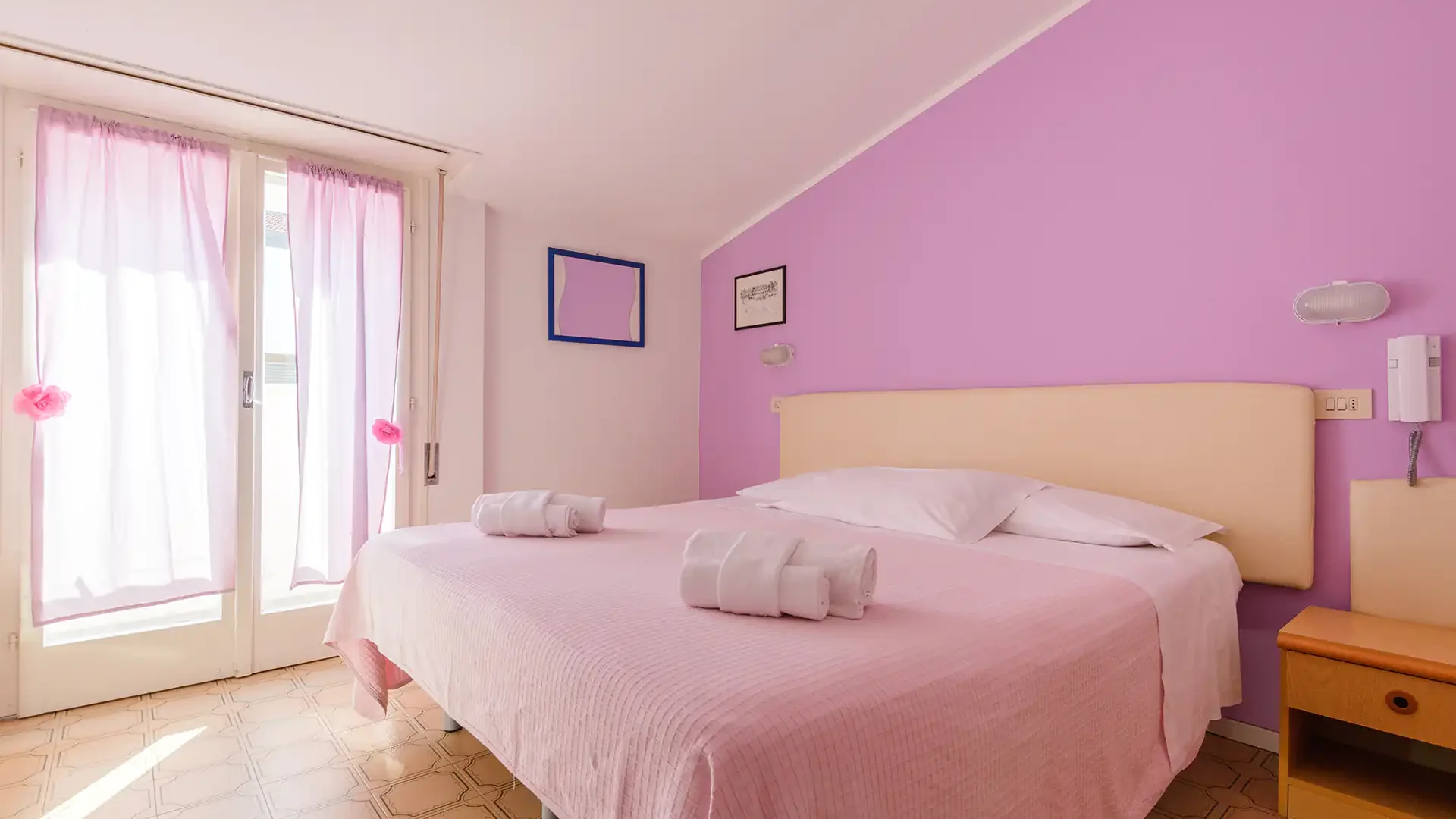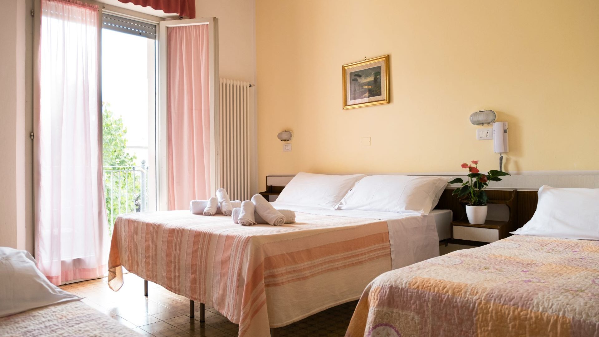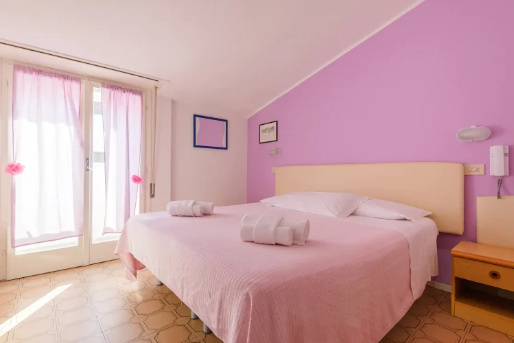 Naviga:HomeCamere Camera con balcone Al mare bisogna soprattutto rilassarsi e noi siamo convinti che il successo di una vacanza passi anche dalla qualità del riposo: ecco perché abbiamo studiato con precisione ogni minimo dettaglio delle nostre camere. Se sei in vacanza con i bimbi piccoli, non pensare a caricare troppo le valigie: in camera troverai lettini e culle per far dormire i bambini accanto al letto matrimoniale, ma anche spondine anticaduta per una maggiore sicurezza.E per il comfort di tutta la famiglia, garantiamo il cambio asciugamani ogni giorno e il cambio lenzuola ogni tre giorni. Varianti Balcone Dotazioni Aria condizionata Asciugacapelli Box doccia Cassaforte Riscaldamento autonomo Set di cortesia Televisore