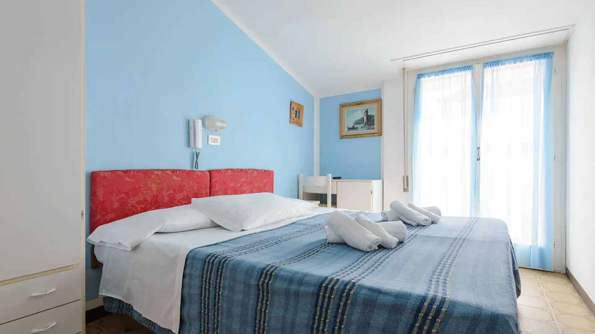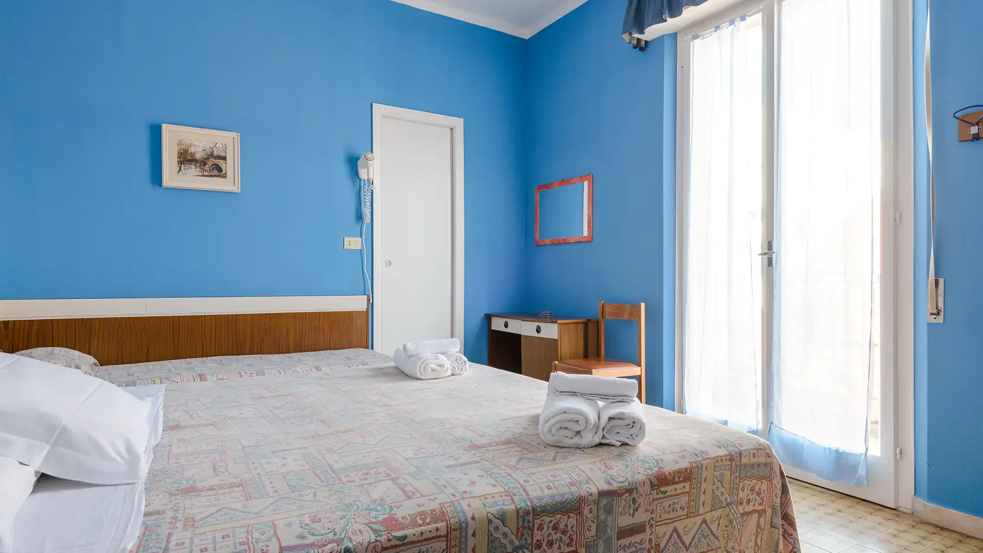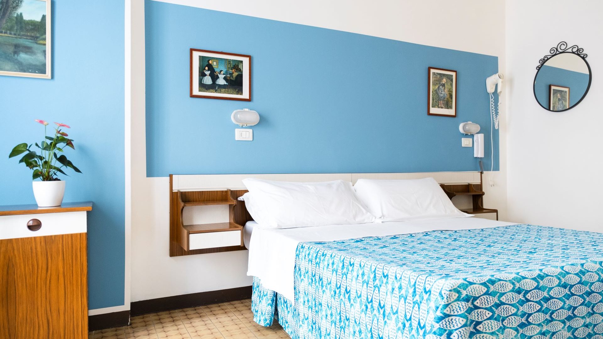 Naviga:HomeCamere Camera Standard Nelle nostre camere Standard, ampie e accoglienti, abbiamo curato ogni dettaglio per garantirti un riposo di qualità. Per le famiglie in viaggio, offriamo camere con lettini o culle, comode spondine anticaduta e tutto ciò che serve per farli dormire tranquilli accanto a te.Ed inoltre mettiamo a disposizione anche uno stendino in camera: ideale per costumi, teli mare e piccoli indumenti dopo una giornata di sole. In più, ogni giorno è previsto il cambio degli asciugamani e ogni tre giorni il cambio delle lenzuola. Perché una vacanza senza pensieri inizia proprio da qui! Dotazioni Aria condizionata Asciugacapelli Box doccia Cassaforte Riscaldamento autonomo Set di cortesia Televisore