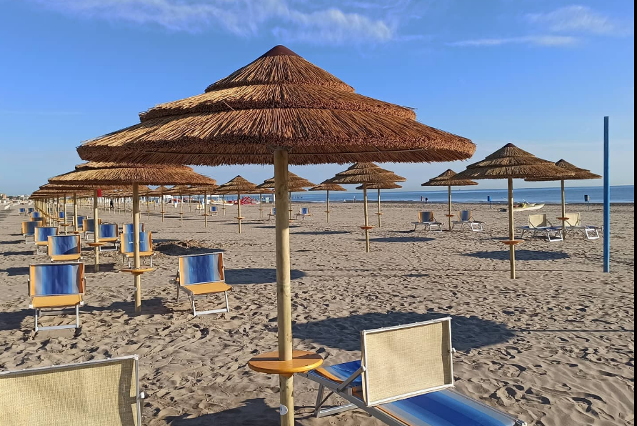 On the beach, you can count on many services for your relaxation: in addition to parasols and sun loungers, you will find beach volleyball, beach tennis and bocce courts, a children’s play area and relaxation areas.
